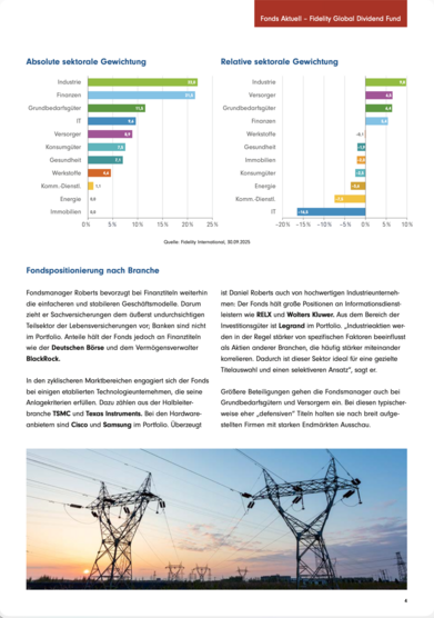 Für Fidelity setzen wir regelmäßig Quartalsupdates zu Anlagestrategien um – kompakte Berichte über Performance, Märkte und Ausblick für professionelle Anleger.
