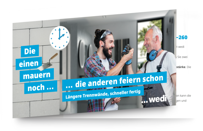 Die 80-mm-Bauplatte ist jetzt für freistehende Trennwände bis 1800 mm zugelassen – länger als alles, was der Markt bietet. Unsere praxisnahe Kampagne macht diesen Vorsprung sichtbar – mit kreativem Ansatz, Claim „Die einen mauern noch, die anderen feiern schon“, Lang-DIN-Flyer und Website.